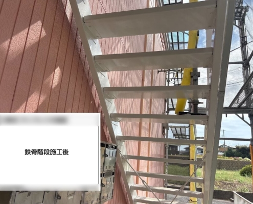 【千葉市若葉区】賃貸アパート鉄骨階段の錆止め・上塗り塗装事例